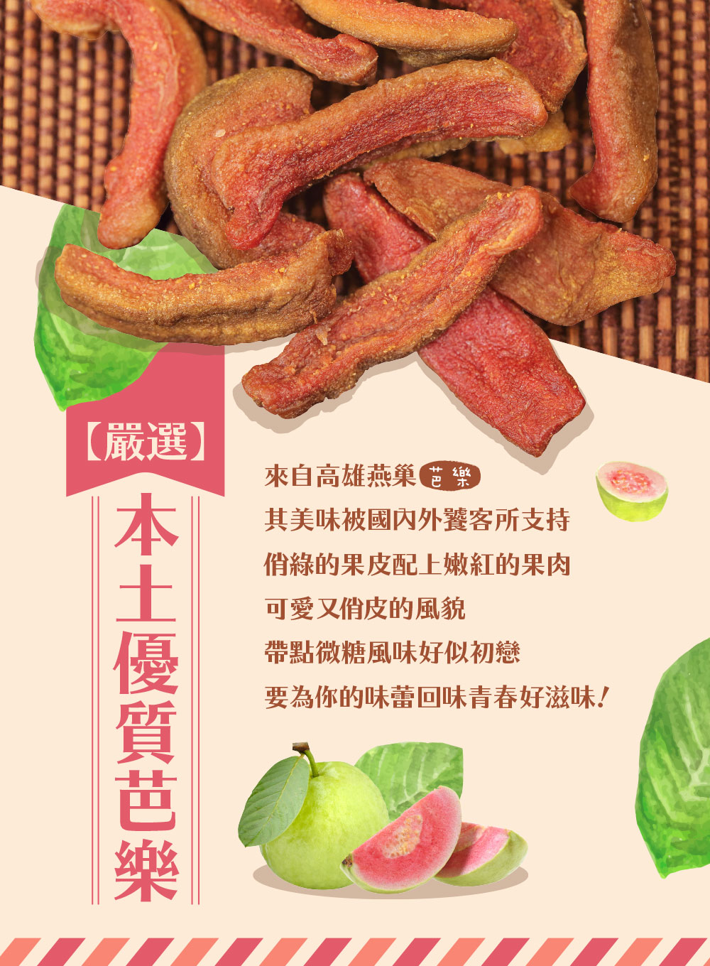 上一個商品 下一個商品 微糖紅心芭樂乾 NT$150 NT$105 【初戀心情】微糖紅心芭樂乾 嚴選本土優質芭樂 來自高雄燕巢 其美味被國內外饕客所支持 俏綠的果皮配上嫩紅的果肉 可愛又俏皮的風貌 帶點微糖風味好似初戀 要為你的味蕾回味青春好滋味! 已售完 分類: 微糖類果乾 描述 描述 商品名稱微糖紅心芭樂乾 成分紅心芭樂、糖淨重160±5g保存期限6個月有效日期標示於封口處保存方式建議冷藏,以確保風味。開封後請儘速食用產地台灣 相關商品 快速瀏覽 缺貨 快速瀏覽 微糖類果乾微糖梅釀洛神花 NT$150 NT$105 查看內容 快速瀏覽 缺貨 快速瀏覽 微糖類果乾微糖珍珠芭樂乾 NT$100 NT$70 查看內容 快速瀏覽 缺貨 快速瀏覽 微糖類果乾微糖晶鑽鳳梨角 NT$150 NT$105 查看內容