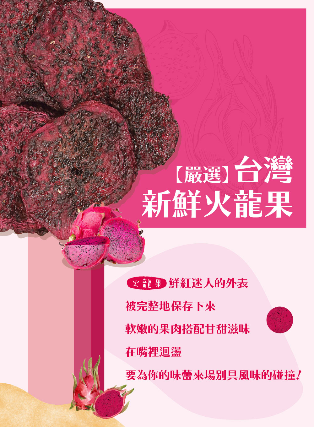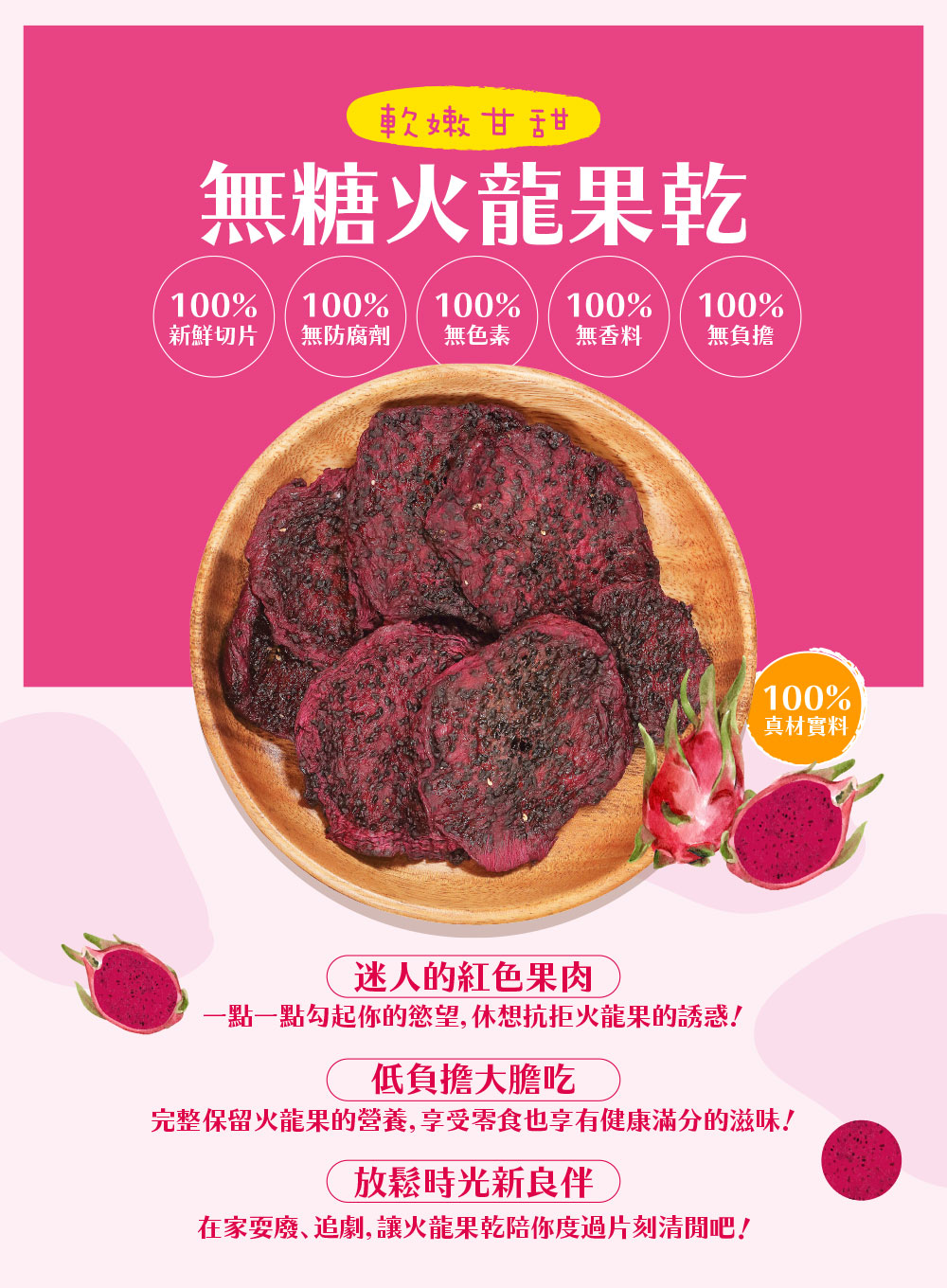 上一個商品 下一個商品 無糖火龍果乾 NT$200 NT$140 【軟嫩甘甜】無糖火龍果乾 嚴選台灣新鮮火龍果 火龍果鮮紅迷人的外表被完整地保存下來 軟嫩的果肉搭配甘甜滋味 在嘴裡迴盪 要為你的味蕾來場別具風味的碰撞! 已售完 分類: 無糖類果乾 描述 描述 商品名稱無糖火龍果乾 成分火龍果淨重160±5g保存期限6個月有效日期標示於封口處保存方式建議冷藏,以確保風味。開封後請儘速食用產地台灣 相關商品 快速瀏覽 缺貨 快速瀏覽 無糖類果乾無糖愛文芒果乾 NT$200 NT$140 查看內容 快速瀏覽 缺貨 快速瀏覽 無糖類果乾無糖晶鑽鳳梨花 NT$150 NT$105 查看內容 快速瀏覽 缺貨 快速瀏覽 無糖類果乾沖泡式檸檬茶片 NT$100 NT$70 查看內容